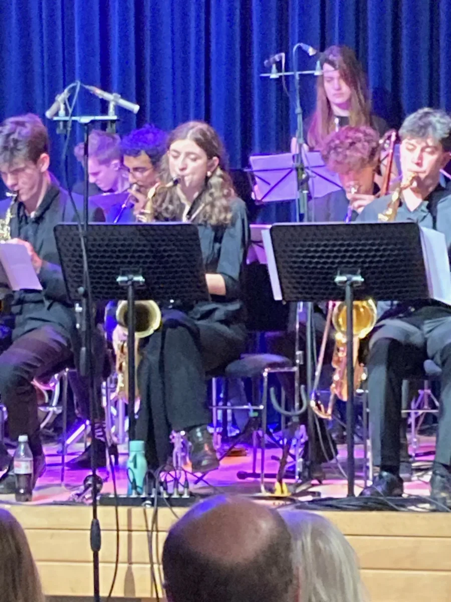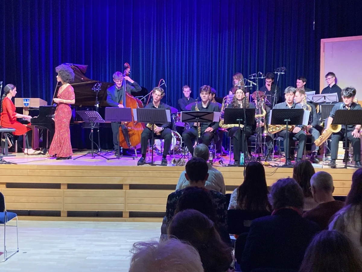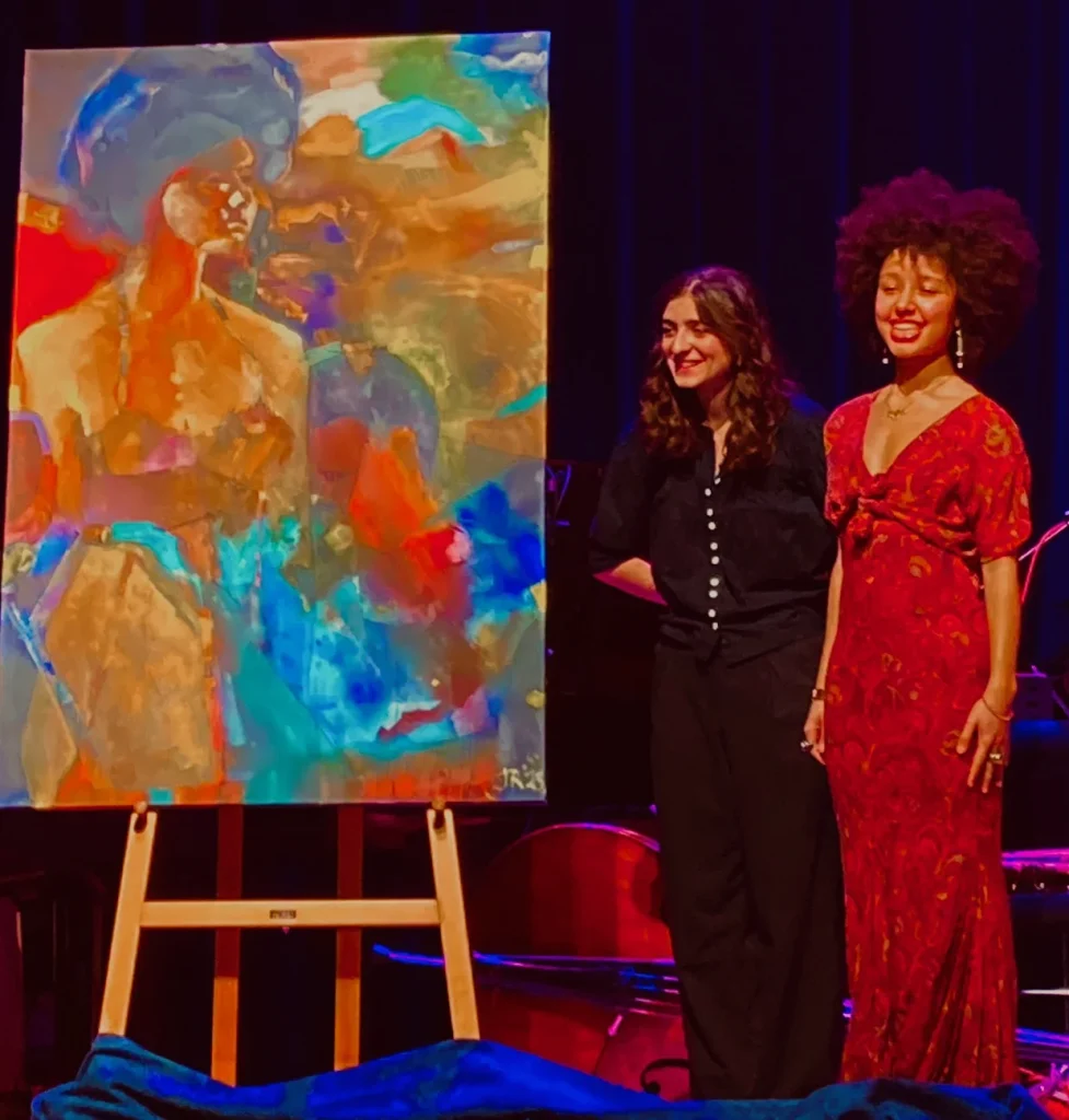 Jon Rowland presented his painting to the Oxford University Jazz Orchestra (OUJO) at St Hilda’s College. Following a gig in 2025 at St. Giles, Jon decided to paint the scene. The painting was presented to the two main musicians, the President of OUJO, Phoebe Holmes-Simeon who sang, and Eva Fidler, the Leader of OUJO. Two women in charge of a mainly male orchestra.